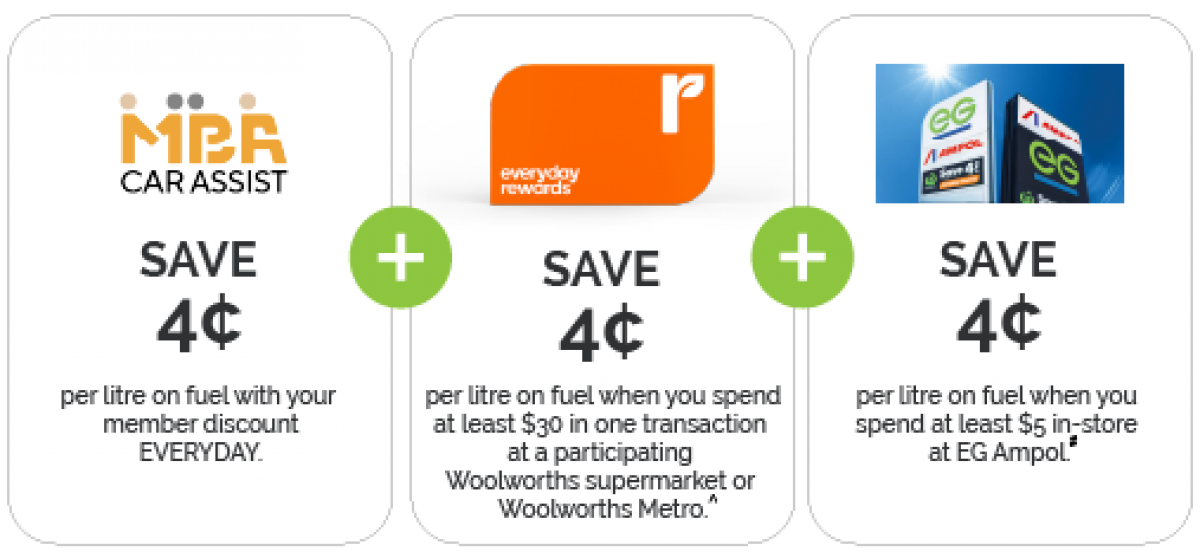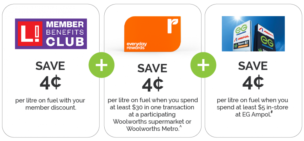 - 4c per litre Woolworths supermarket fuel discount^ voucher offer and;